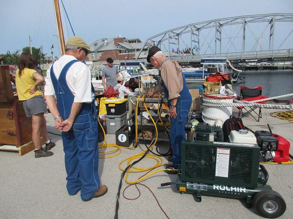 From the diver’s point of view, the most critical example was the use of a vintage hand operated air pump. According to Bill Pelky of LMCDO/DESCO, who rebuilt the pump, it was easy for anyone to crank the pump and maintain a steady rhythm.
