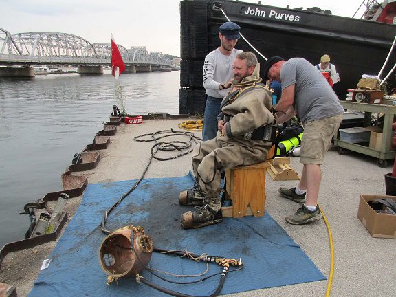 The divers were using the classic hard hat helmet and hose diving gear. I described the difficulties in using this kind of equipment in a previous story: https://wmhs.org/how-i-relived-my-youth-on-the-bottom-of-lake-michigan/