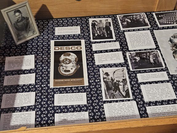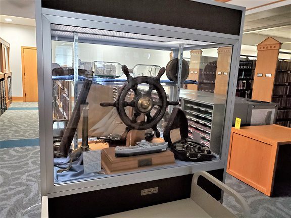 WMHS executive director Suzette Lopez constructed a series of display cases highlighting the career and achievements of Max Nohl. During the months of May and June, the cases were on display at the entrance to the Humanities Room on the second floor of the Milwaukee Central Public Library. Also, on display currently in the Humanities Room are models of, and the wheel from, the freighter PRINS WILLEM V, which sank off Milwaukee in 1954. Attempting to salvage the PRINS was Max’s last project before his death in 1960.