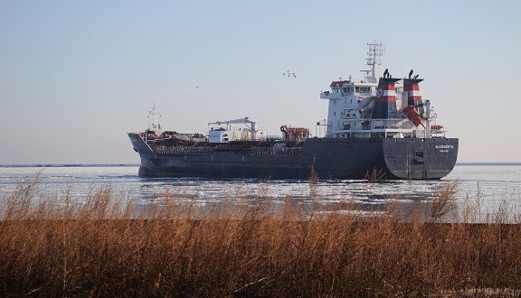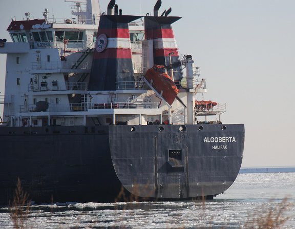Our Milwaukee area correspondent, Bruce Nason, captured these photos of the Oil/Chemical Tanker ALGOBERTA leaving Port of Milwaukee Friday (2/13) morning after a one day stop at the Liquid Cargo Pier. ALGOBERTA is flagged at Halifax, Nova Scotia, Canada, was built in 2007 and is 470 feet.