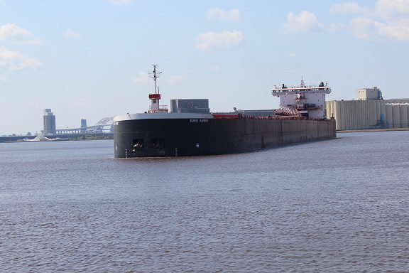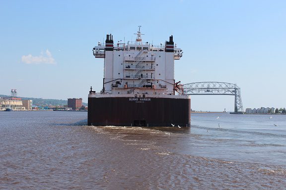 Elmer Engman, our Duluth correspondent, reports that the BURNS HARBOR was leaving Duluth this sunny day with a cargo of taconite.