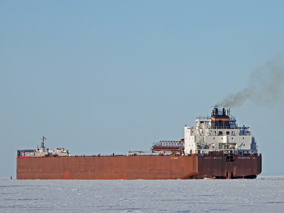 The Detroit River welcomes two 10,000 ton steel freighters