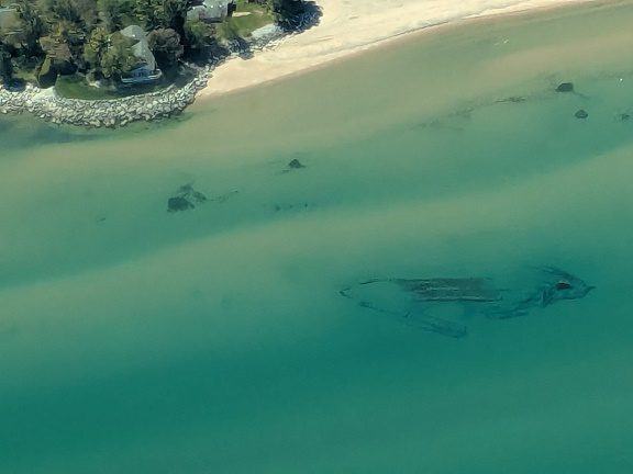 August 25, 2025By James Heinz Here is the third in a series of photos taken by me from my Cessna 172 of the shipwrecks of Rawley Point. There are 12 identified and 10 unidentified shipwrecks off Rawley Point. This one appears to be a small sailing vessel. It is pointed towards the…Read more