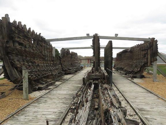 Remains of wrecked ship and historic markers