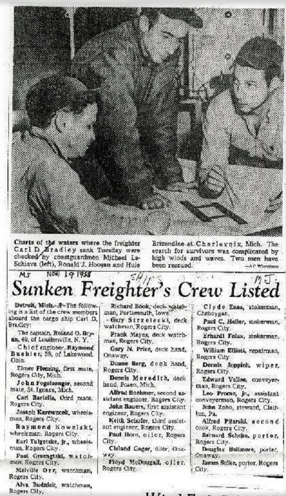 On this day November 18, 1958, Lake Michigan claimed the steamer CARL D. BRADLEY as well as 33 of her crew of 35. Rogers City, Michigan, was especially devastated. It was home to 23 of the lost crew. The newspapers showed grieving families, churches full of caskets, the two survivors in hospital beds, basically an entire town in shock.