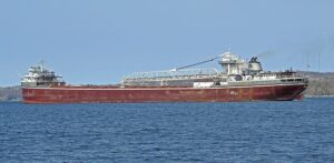 The WILFRED SYKES was built in 1949 at Lorain, Ohio, by the American Ship Building Co. for the Inland Steel Co. Her namesake was the President of Inland Steel. She measured 661.1 feet in length, 70.2 feet in beam, and 32.3 in depth. Construction of the SYKES marked the first building of bulk freighters in an American yard since 16 carriers launched in 1942 and 1943 were completed. Central Marine Logistics currently owns her.