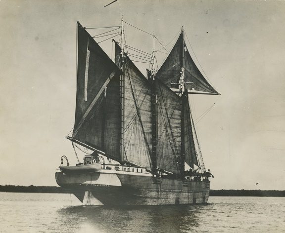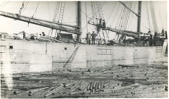 A three-masted schooner, the OUR SON was built in 1875 at Black River, Ohio, by Henry Kelley.   Her owners were Henry Kelley and his son Frank A. Kelley.  It is said that Henry chose the name as an honor to all his sons, several of which had died before the schooner was built.  She measured 182 feet in length, 34.6 feet in beam and 13.4 feet in draft and was originally built for the ore and grain trade but in her later years hauled spruce and balsam pulpwood.