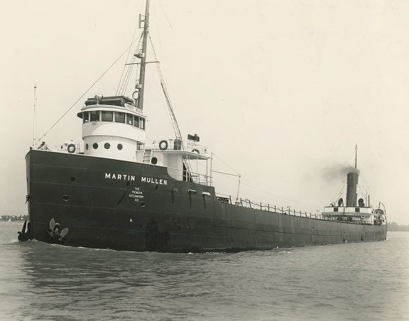 On this day May 14, 1904, the steel steamer MARTIN MULLEN was launched at Cleveland by the American Ship Building Company.  The MULLEN was built for Charles L. Hutchinson of the Hutchinson Fleet (Pioneer Steamship Co.) and christened by Miss Mary Mullen, sister of the well-known coal and vessel man for whom the boat was named.   Her estimated cost was $270,000 and she measured 416 feet in length, 50 feet in beam and 28 feet in depth.  She could carry 6,700 tons of freight.