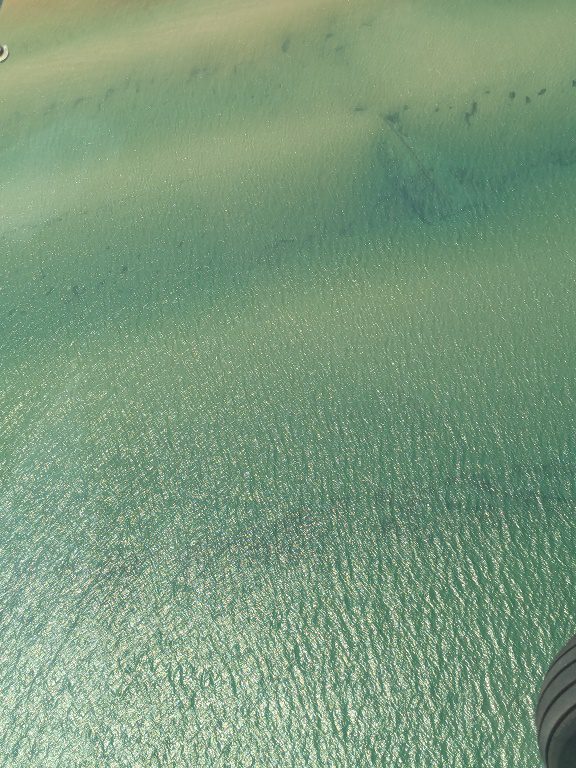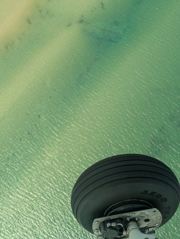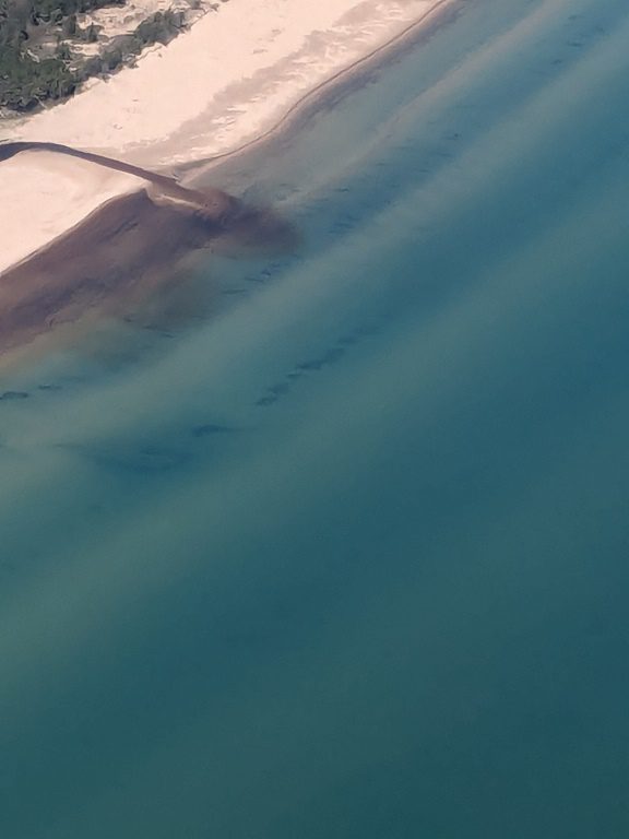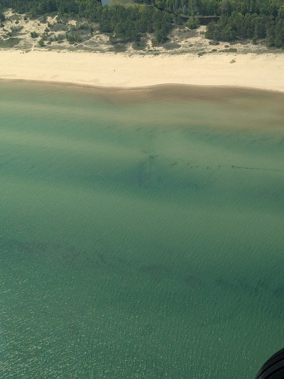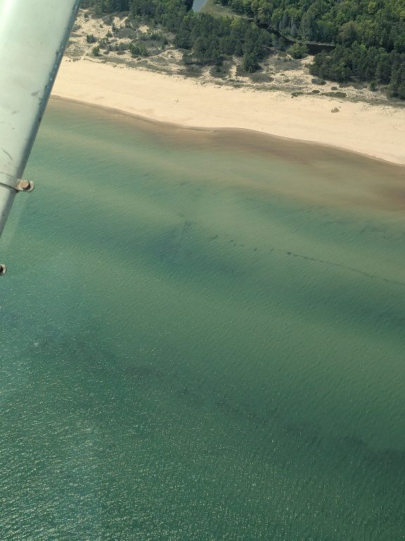 Here is the third in a series of photos taken by me from my Cessna 172 of the shipwrecks of Rawley Point. There are 12 identified and 10 unidentified shipwrecks off Rawley Point. This one appears to be a small sailing vessel. It is pointed towards the shore, and is located near the mouth of Molash Creek on the south side of the Point Beach State Forest, south of the Point. If anyone knows which shipwreck this is, please let us know.