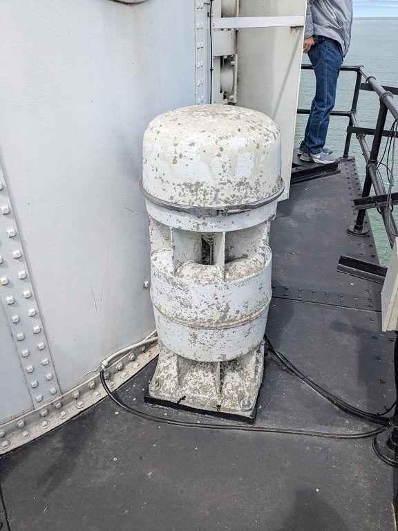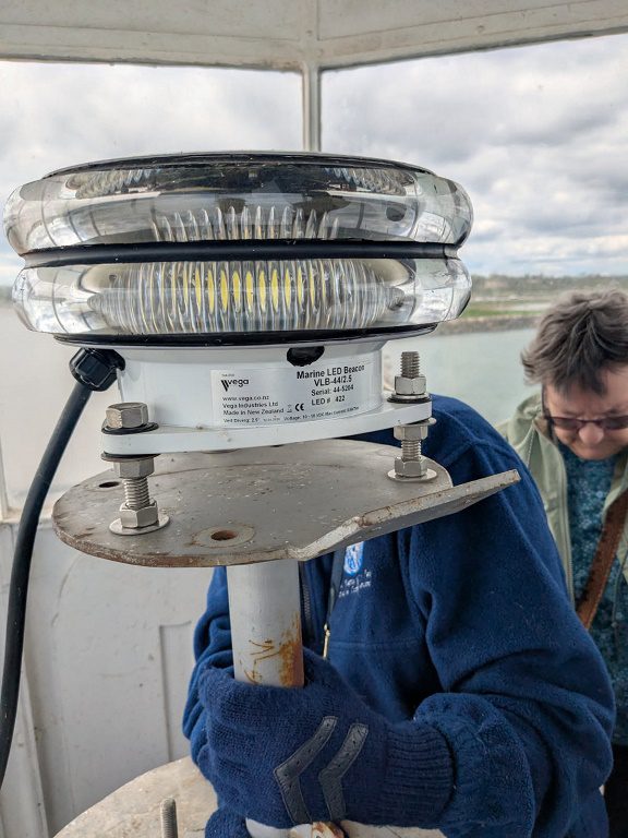 Originally a red fifth order Fresnel lens was installed but was later replaced by a fourth order lens. It was originally equipped with a compressed air Type F diaphone (the technical name for a foghorn) until it was replaced by an electric diaphone in the 1960s. Both foghorns still remain.
