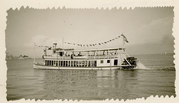 “The last boat that my dad bought for his passenger run was the MAYFLOWER, JR. A 90′ stern-wheeler, it had been used to carry excursion parties on Lake Winnebago and the Fox River out of Oshkosh, Wisconsin. It was purchased from the William W. Wilkins estate of Oshkosh in 1933 to take the place of THE NORTH SHORE which was going to be used as a passenger boat in Chicago during the Century of Progress.