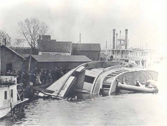 Photo at top of page: PAUL L. on its side at Riverside Park, Oshkosh, May 28, 1910